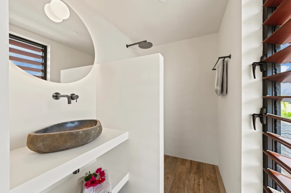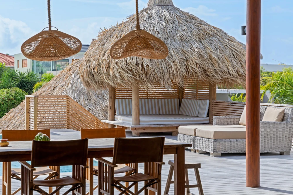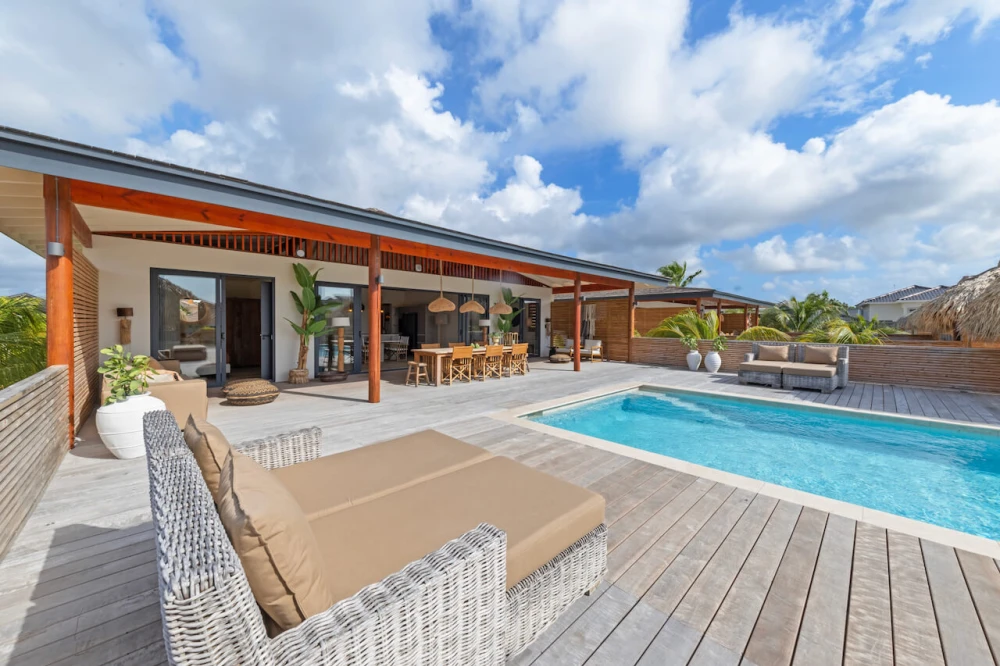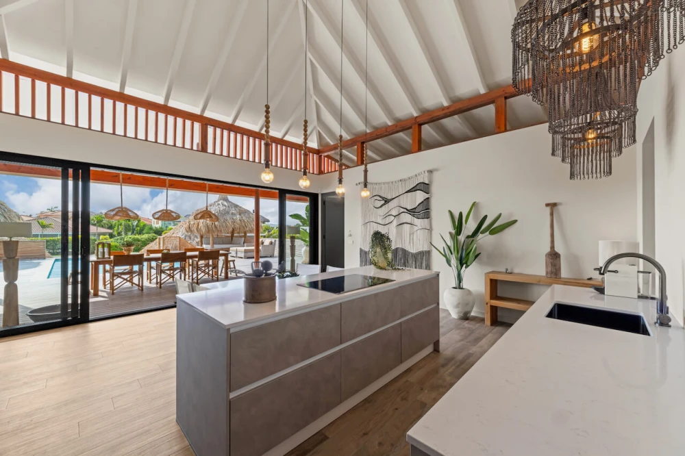 🌬️ Ultiem Buitenleven op de Wind Dankzij de verhoogde ligging vang je hier heerlijk de verkoelende passaatwind. Het leven speelt zich af op de ruime porch en het zonovergoten pooldeck. Met sfeervolle palapa’s en een naadloze overgang naar de luxe woonkeuken voelt het direct als je eigen tropische residentie.