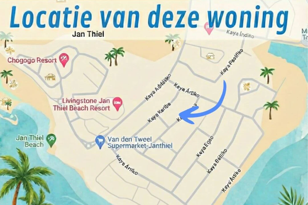📍 Toplocatie bij stranden Jan Thiel Je verblijft in de prestigieuze wijk Vista Royal. De auto is eigenlijk overbodig: binnen enkele minuten wandel je naar de supermarkt, de sportschool en de populaire beachclubs van Jan Thiel (Zanzibar, Papagayo).